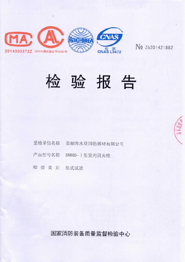 I plant was founded in June 1976, the existing staff of 600 people,including all kinds of technical and management staff of 68 people.With 50 millon yuan in fixed assets,covers an area of over 35,000 square meters,construction area of over 25,000 square meters.The establishment of a sound quality system. made a variety of "measurement of qualified certification",and become Jiangsu and more provinces of the fire association member units.Factory strong technical force,production and testing equipment,advanced technology.Production "water flower"brand water with intertace:KDK65,KD65,KY65,KN65.Fire water gun:QZG3.5/7.5,QZ3.5/7.5,QP8/0.7Z foam water gun.Indoor fire hydrant:SN65,SNW65-1,SNZ65,SNZW65-1.Fire hose reel JPS0.8-19/25.Production of "postal" card,fire with lining water:65-8,10,13.16,20,25 type;80-16,20,25 type.Water interface:KD50,65;KY50,65;KN65.Fire water gun:QZ3.5/7.5.5.Indoor fire hydrant:SN65,SNW65-1,SNZ65,SNZW65-I.And in May 2015 through the Ministry of Public Security Fire Product Conformity Assessment Center 3C version of the inspection access to all of the above products,mandatory certification,to allow the production and marketing,product marketing throughout the country,praised by the majority of users.